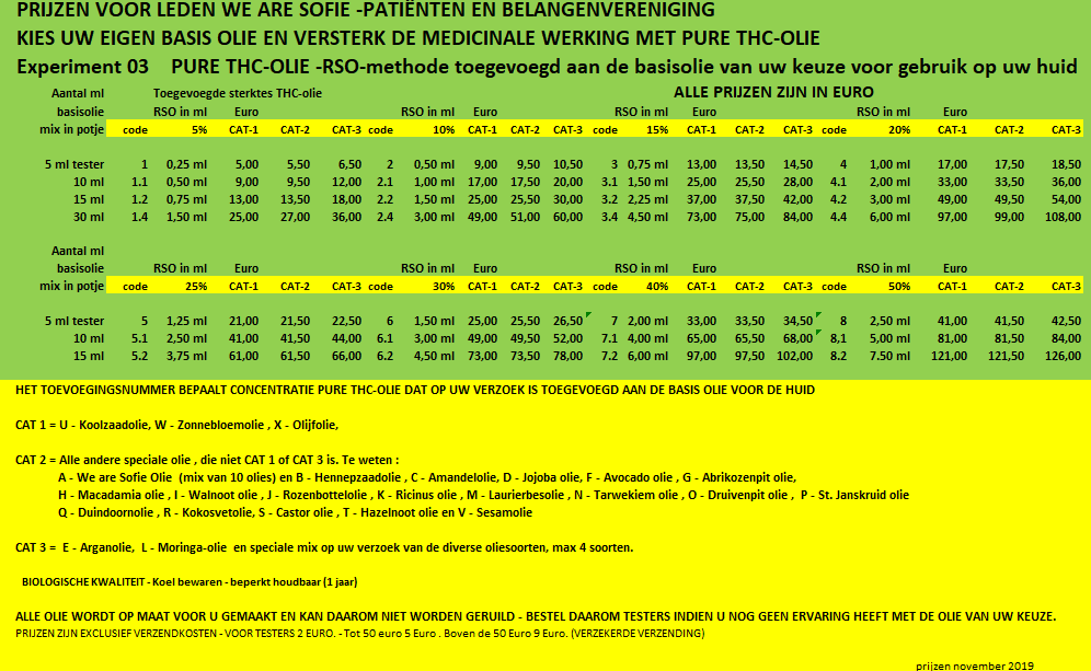 * A = We Are Sofie-Olie... en 1.2 = 15 ml - 5 % THC-Olie toegevoegd...